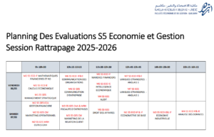 Planning des évaluations session normale S1, S3 et S5 Licence NG 2025-2026